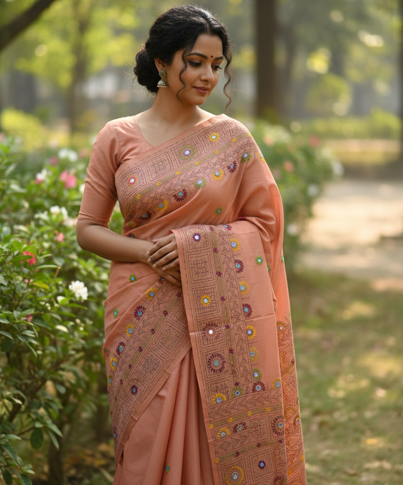 Bangalore Blended Silk Saree with Traditional Lambani Hand Stitch Embroidery – Elegant Party & Festive Wear
